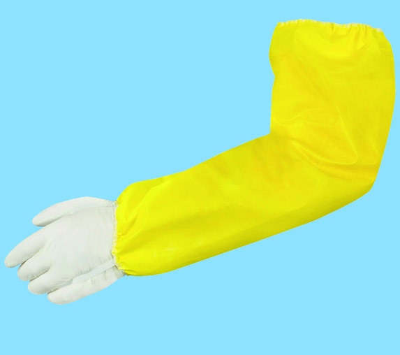 Dünner Handschuh für Hygienezwecke. Schutz bis zum Ellbogen. Weiß eingefärbt.