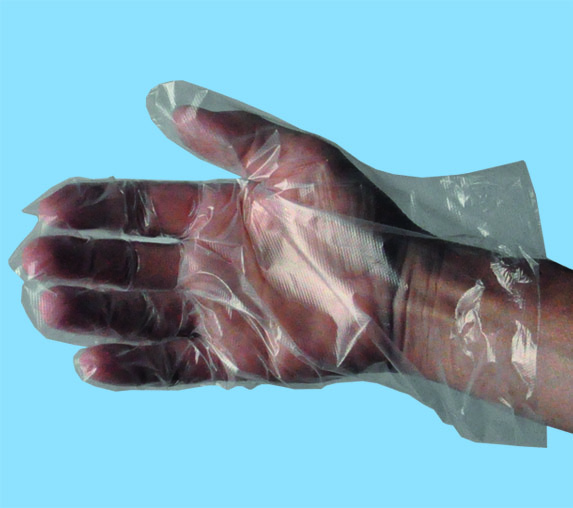 Hauchdünner transparenter Handschuh für Lebensmittelverkauf, Hygiene, Fahrzeugbetankung.